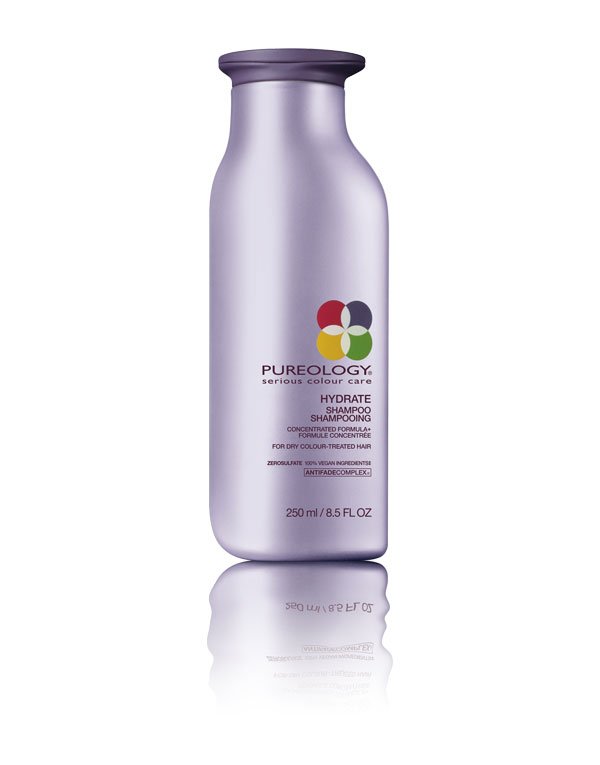 “Pureology Hydrate Shampoo deeply hydrates normal to thick dry, color-treated hair with key ingredients Jojoba, Green Tea, and Sage and a signature aromatherapy blend of Lavender, Bergamot, and Patchouli.